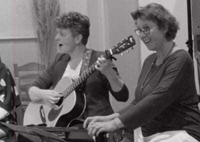 Dit singer-songwriter duo zingt liederen die ze zelf schrijven en bestaande liederen die ze na aan